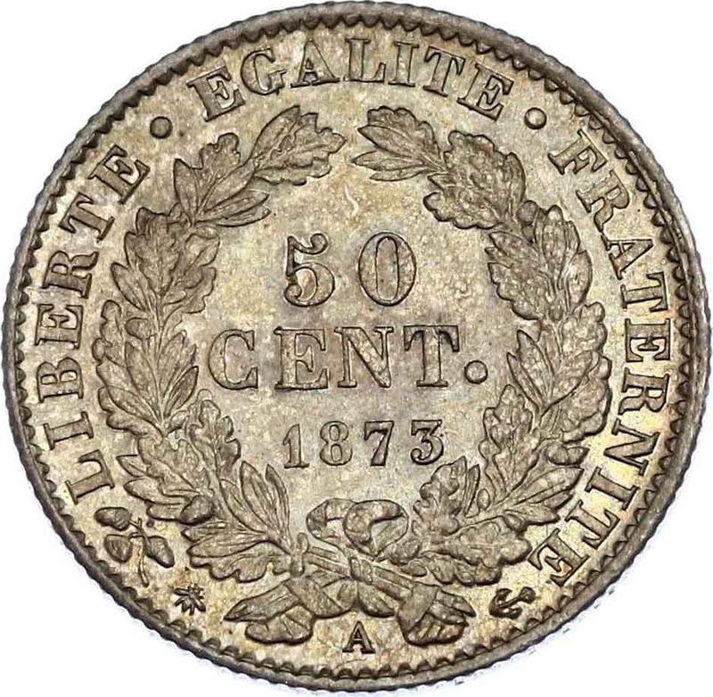 50 сантимов 1873 года A "Тип 1871-1895" (Франция, Третья республика)