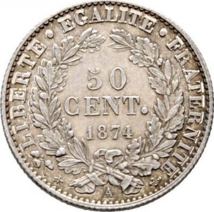 50 сантимов 1874 года A "Тип 1871-1895" (Франция, Третья республика)
