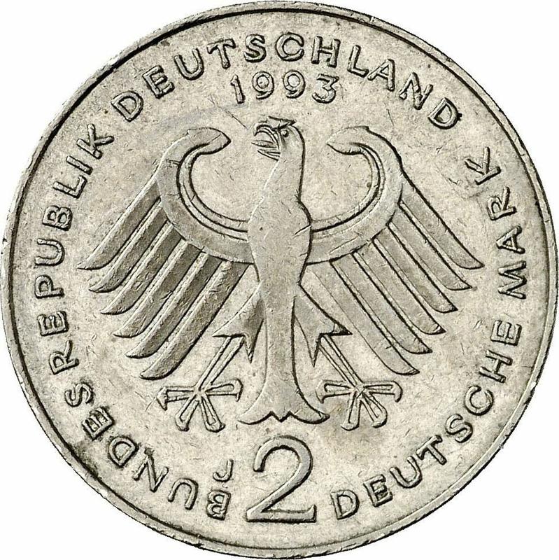 2 марки 1993 года J "Людвиг Эрхард" (Германия, ФРГ)