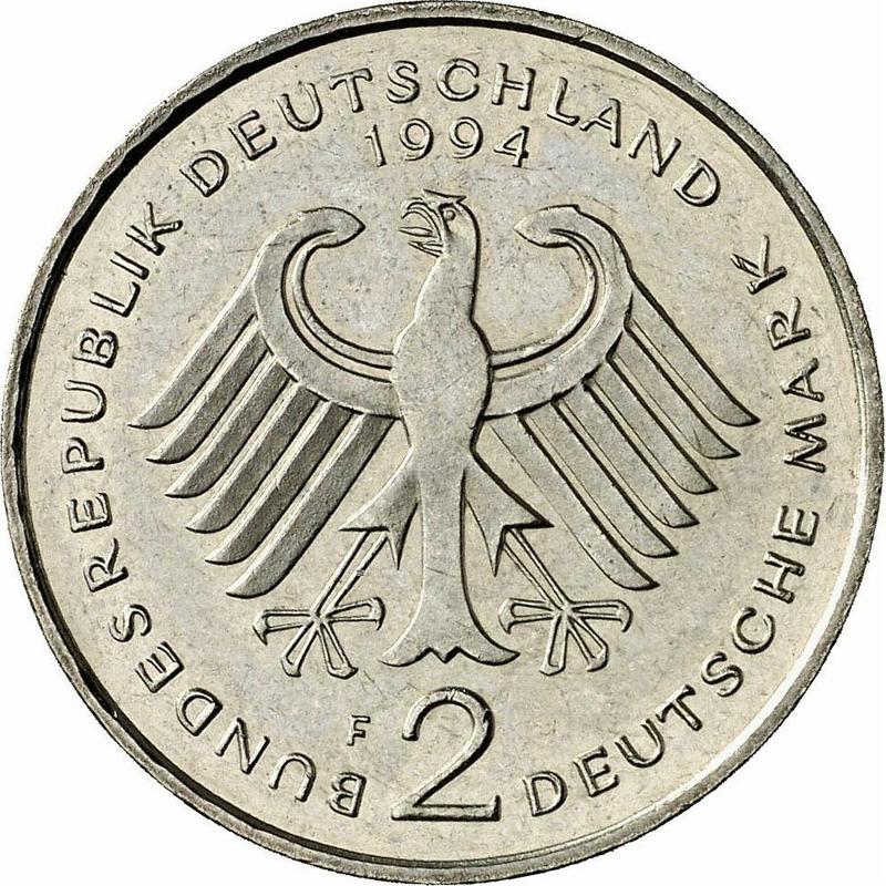 2 марки 1994 года F "Людвиг Эрхард" (Германия, ФРГ)