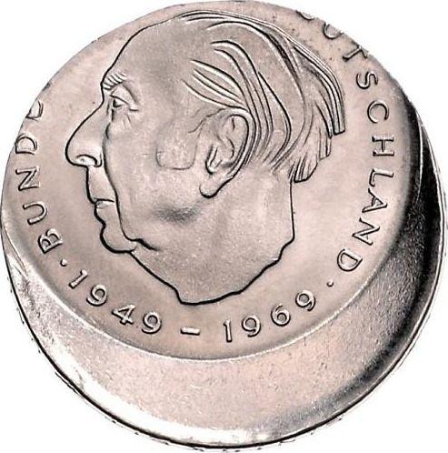 Сколько стоит медно-никелевая монета ФРГ 2 марки 1970-1987 года "Теодор Хойс", разновидность - смещение штемпеля?