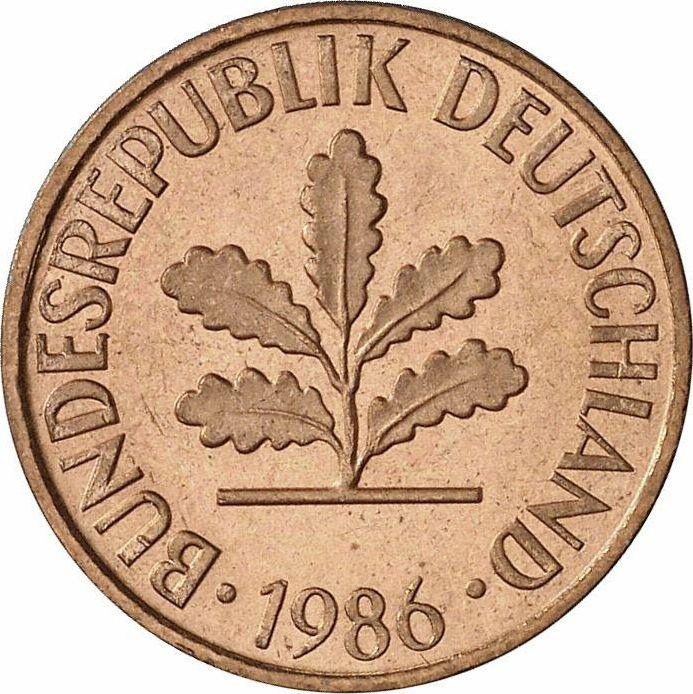 2 пфеннига 1986 года F (Германия, ФРГ)
