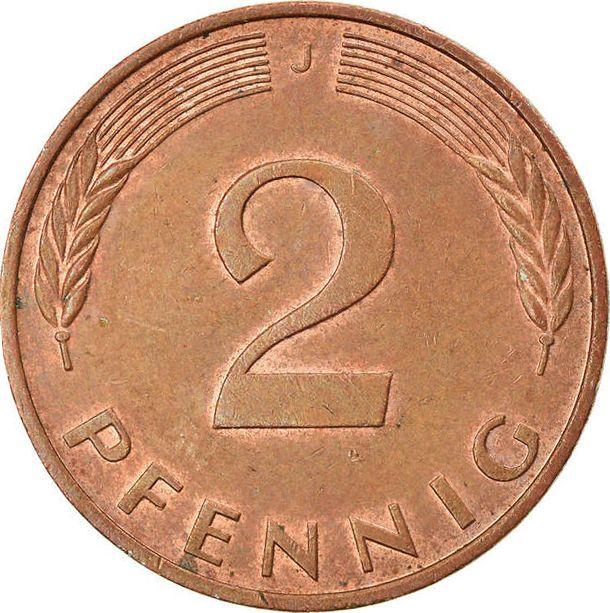 2 пфеннига 1996 года J (Германия, ФРГ)