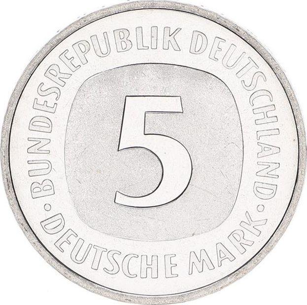 Сколько стоит никелевая монета ФРГ 5 марок 2001 года A?