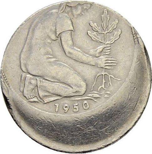 50 пфеннигов 1949-2001 года. Смещение штемпеля (Германия, ФРГ)