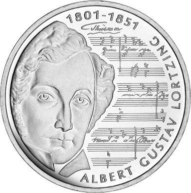 Сколько стоит серебряная монета ФРГ 10 марок 2001 года F "Альберт Лорцинг"?