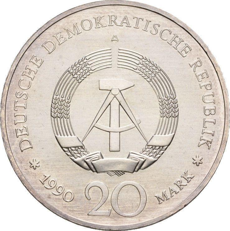 Сколько стоит серебряная монета Германской Демократической Республики 20 марок 1990 года A "Бранденбургские Ворота", разновидность - серебро?