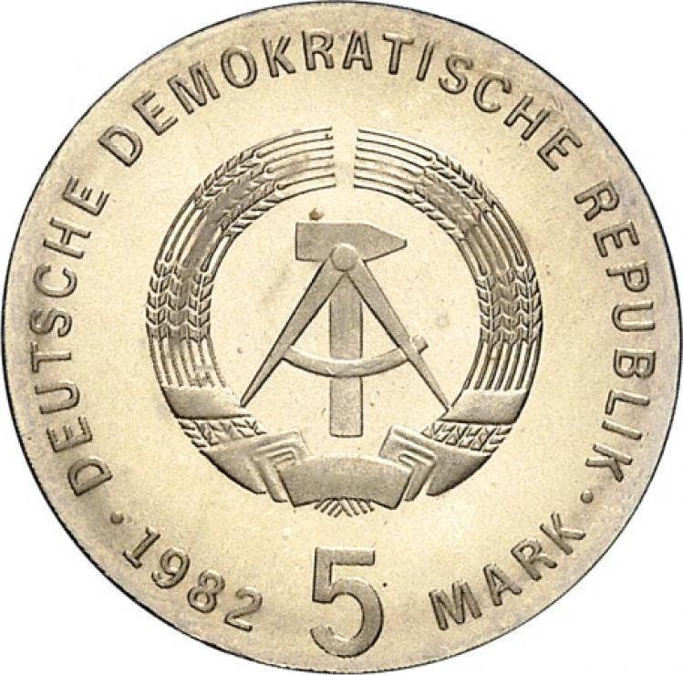 Сколько стоит медно-никелевая монета Германской Демократической Республики 5 марок 1982 года "Фрeбель"?