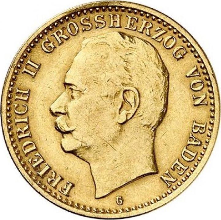 По последним данным на 6 декабря 2025 средняя стоимость золотой монеты 10 марок 1911 года "Баден" с буквами G составляет 4400 USD. В монете содержится 3,5838 гр чистого золота, поэтому ниже 483,56 USD продавать монету не рекомендуем, даже если она в плохой сохранности и не представляет коллекционного интереса.