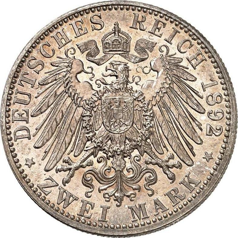 Сколько стоит серебряная монета Германской империи 2 марки 1892 года G "Баден"?
