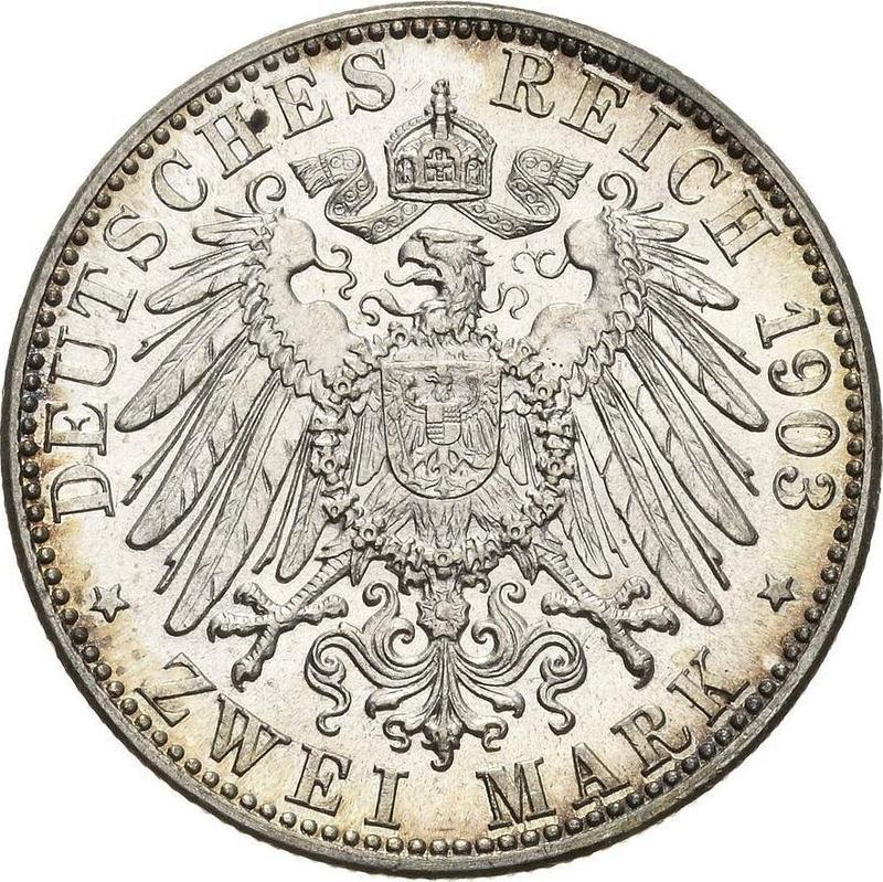 Сколько стоит серебряная монета Германской империи 2 марки 1903 года G "Баден"?
