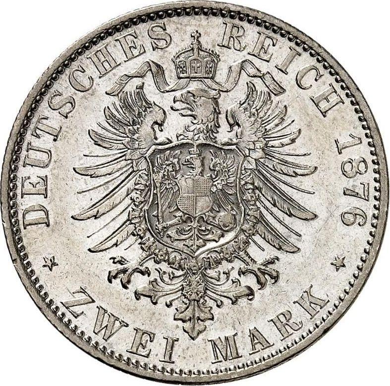 По последним данным на 5 декабря 2025 средняя стоимость серебряной монеты 2 марки 1876 года "Бавария" с буквами D составляет 200 USD для регулярного чекана и 1400 USD для монет отчеканенных по технологии PROOF.
