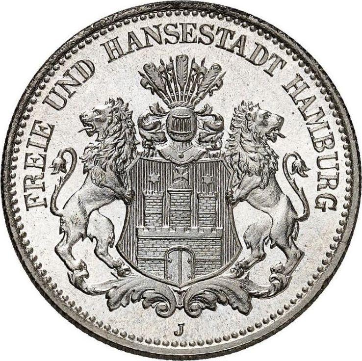 По последним данным на 6 декабря 2025 средняя стоимость серебряной монеты 2 марки 1905 года "Гамбург" с буквами J составляет 150 USD для регулярного чекана и 940 USD для монет отчеканенных по технологии PROOF.