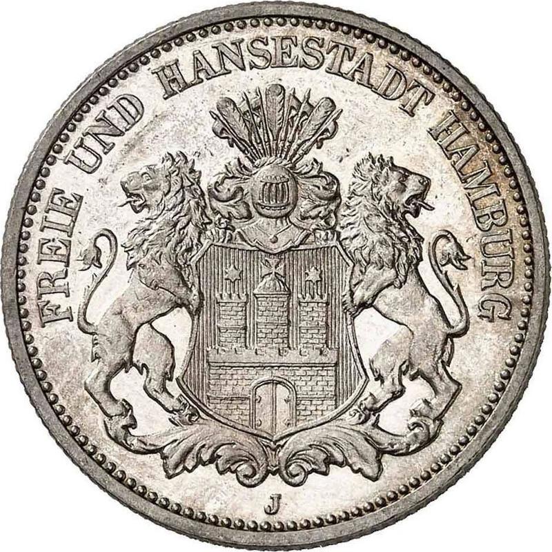 По последним данным на 6 декабря 2025 средняя стоимость серебряной монеты 2 марки 1911 года "Гамбург" с буквами J составляет 120 USD для регулярного чекана и 610 USD для монет отчеканенных по технологии PROOF.
