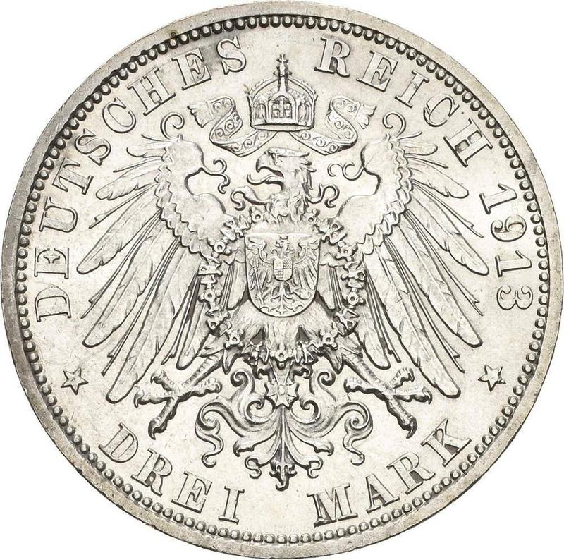 Сколько стоит серебряная монета Германской империи 3 марки 1913 года A "Липпе-Детмольд"?