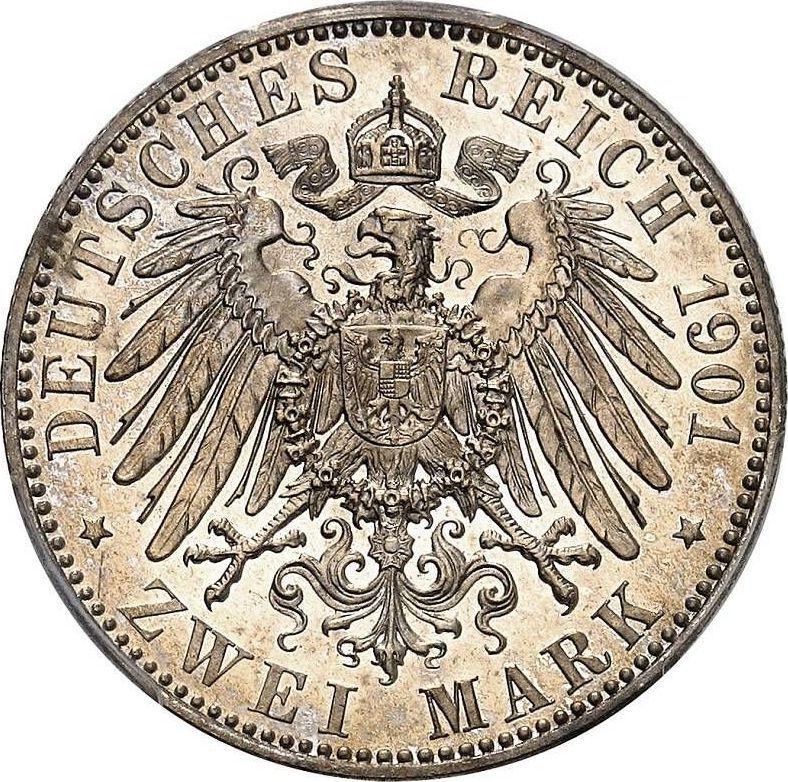 Сколько стоит серебряная монета Германской империи 2 марки 1901 года A "Ольденбург"?