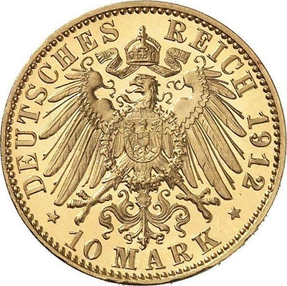 По последним данным на 6 декабря 2025 средняя стоимость золотой монеты 10 марок 1912 года "Пруссия" с буквами A составляет 120 USD для регулярного чекана и 2900 USD для монет отчеканенных по технологии PROOF. В монете содержится 3,5838 гр чистого золота, поэтому ниже 483,56 USD продавать монету не рекомендуем, даже если она в плохой сохранности и не представляет коллекционного интереса.
