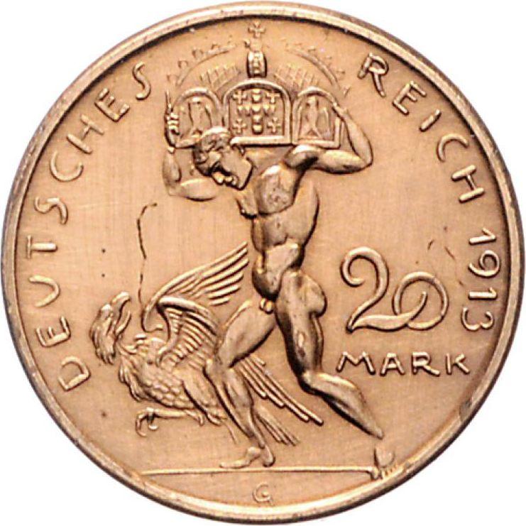 Пробные 20 марок 1913 года. Медь (Германия, Германская Империя)