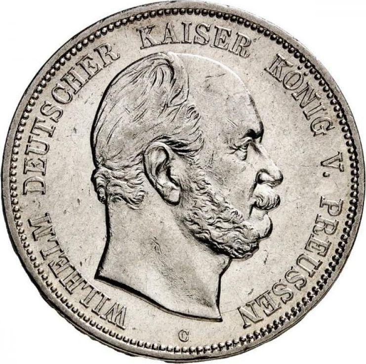 По последним данным на 5 декабря 2025 средняя стоимость серебряной монеты 5 марок 1876 года "Пруссия" с буквами C составляет 75 USD для регулярного чекана и 4100 USD для монет отчеканенных по технологии PROOF.