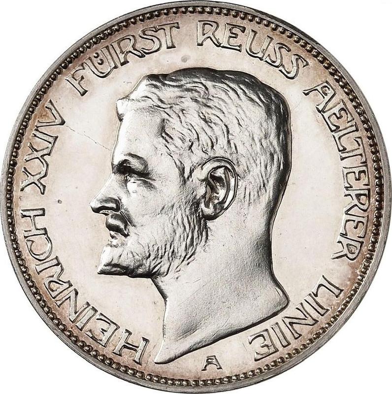 По последним данным на 5 декабря 2025 средняя стоимость серебряной монеты пробные 3 марки 1909 года "Рейсс-Грейц" с буквами A составляет 4800 USD для регулярного чекана и 13000 USD для монет отчеканенных по технологии PROOF.