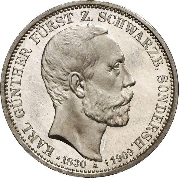 Сколько стоит серебряная монета Германской империи 3 марки 1909 года A "Шварцбург-Зондерсгаузен", разновидность - даты жизни?
