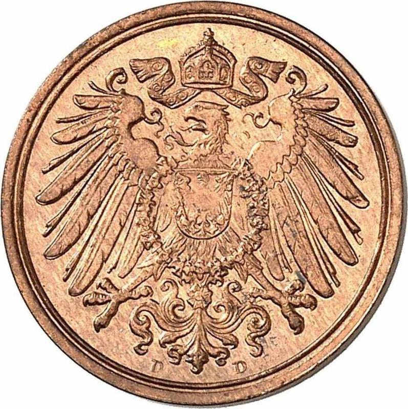 1 пфенниг 1906 года D "Тип 1890-1916" (Германия, Германская Империя)
