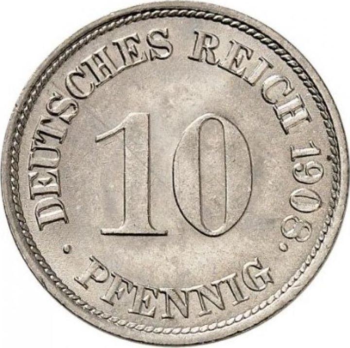 10 пфеннигов 1908 года G "Тип 1890-1916" (Германия, Германская Империя)