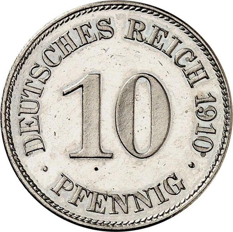 По последним данным на 5 декабря 2025 средняя стоимость медно-никелевой монеты 10 пфеннигов 1910 года "Тип 1890-1916" с буквами E составляет 55 USD для регулярного чекана и 80 USD для монет отчеканенных по технологии PROOF. Монета выполнена из недрагоценного металла, поэтому в плохой сохранности может иметь карайне низкую стоимость и ликвидность.