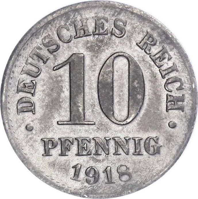 10 пфеннигов 1918 года D "Тип 1916-1922" (Германия, Германская Империя)