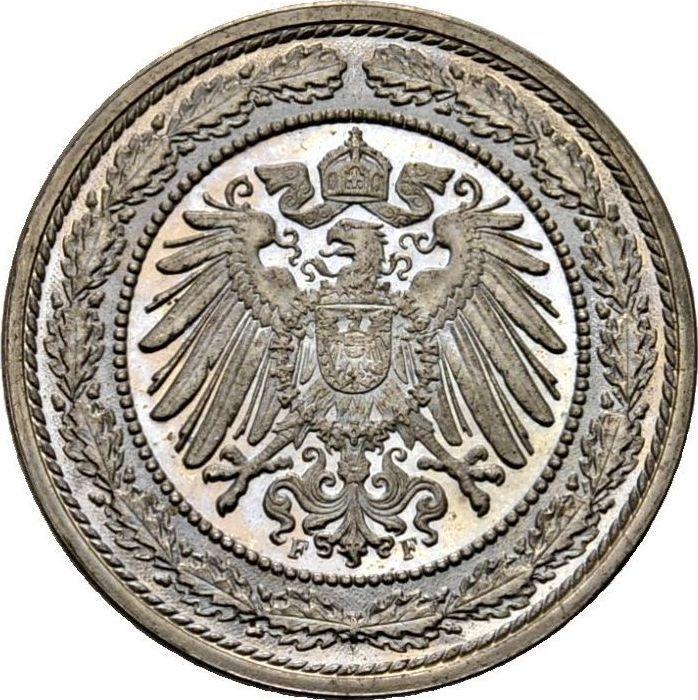 По последним данным на 6 декабря 2025 средняя стоимость медно-никелевой монеты 20 пфеннигов 1890 года "Тип 1890-1892" с буквами F составляет 180 USD для регулярного чекана и 1700 USD для монет отчеканенных по технологии PROOF. Монета выполнена из недрагоценного металла, поэтому в плохой сохранности может иметь карайне низкую стоимость и ликвидность.