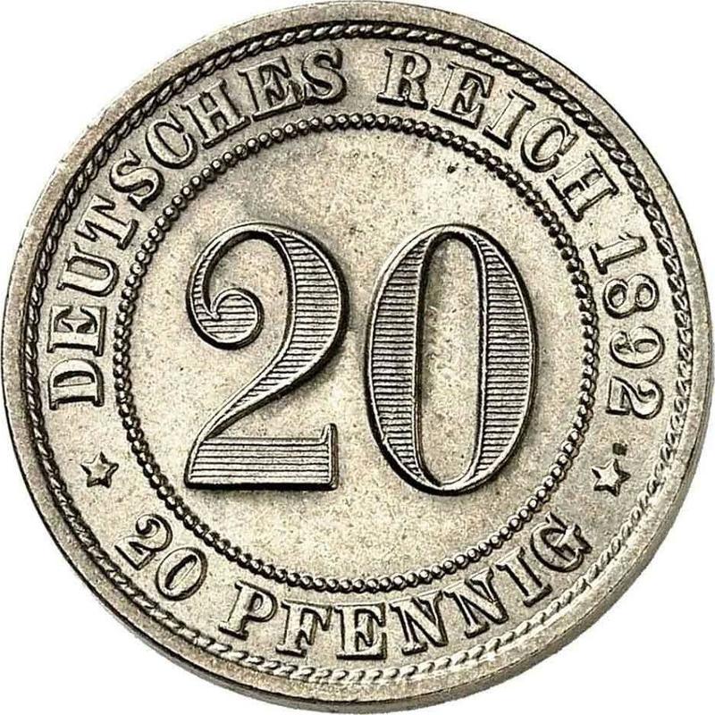 По последним данным на 6 декабря 2025 средняя стоимость медно-никелевой монеты 20 пфеннигов 1892 года "Тип 1890-1892" с буквами E составляет 190 USD. Монета выполнена из недрагоценного металла, поэтому в плохой сохранности может иметь карайне низкую стоимость и ликвидность.