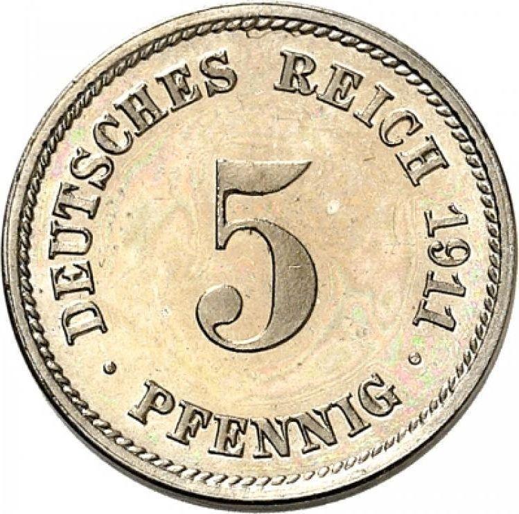 5 пфеннигов 1911 года F "Тип 1890-1915" (Германия, Германская Империя)