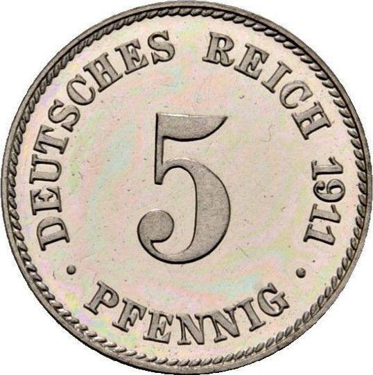 5 пфеннигов 1911 года J "Тип 1890-1915" (Германия, Германская Империя)