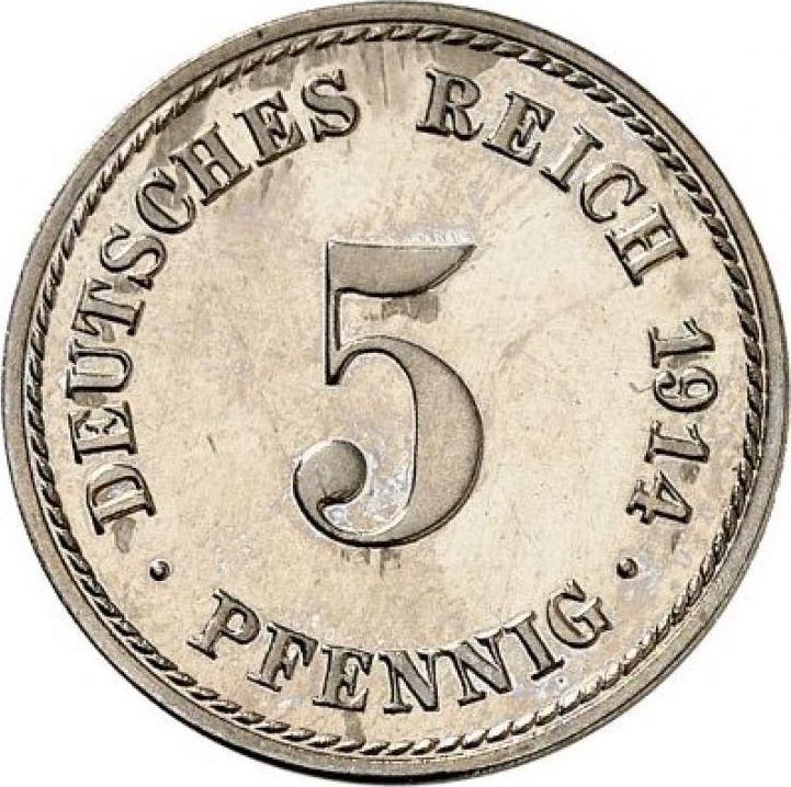 5 пфеннигов 1914 года A "Тип 1890-1915" (Германия, Германская Империя)