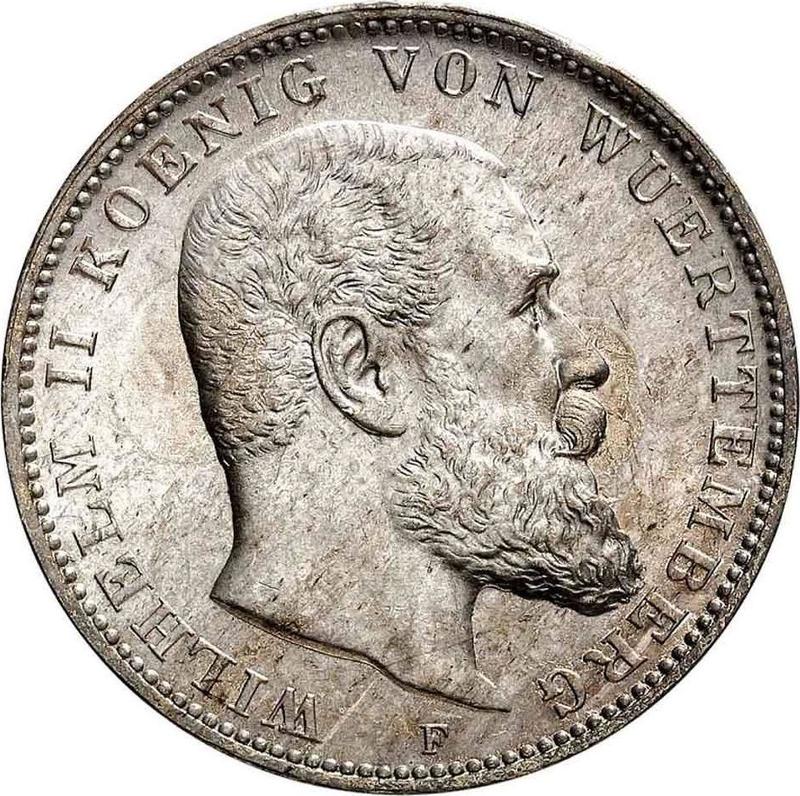 По последним данным на 5 декабря 2025 средняя стоимость серебряной монеты 3 марки 1908 года "Вюртемберг" с буквами F составляет 130 USD для регулярного чекана и 660 USD для монет отчеканенных по технологии PROOF.