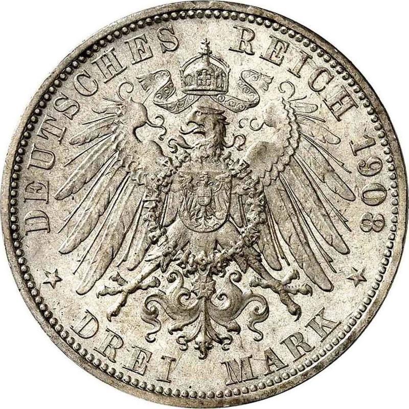 Сколько стоит серебряная монета Германской империи 3 марки 1908 года F "Вюртемберг"?