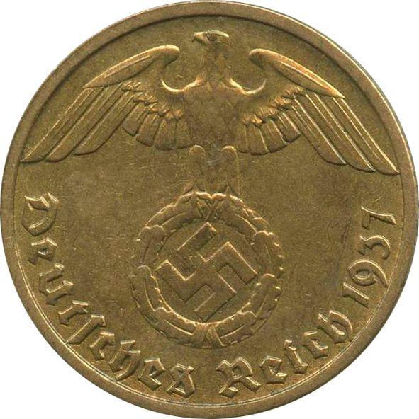 10 рейхспфеннигов 1937 года J "Тип 1936-1939" (Германия, Третий рейх)