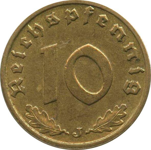 По последним данным на 6 декабря 2025 средняя стоимость бронзовой монеты 10 рейхспфеннигов 1937 года "Тип 1936-1939" с буквами J составляет 25 USD. Монета выполнена из недрагоценного металла, поэтому в плохой сохранности может иметь карайне низкую стоимость и ликвидность.