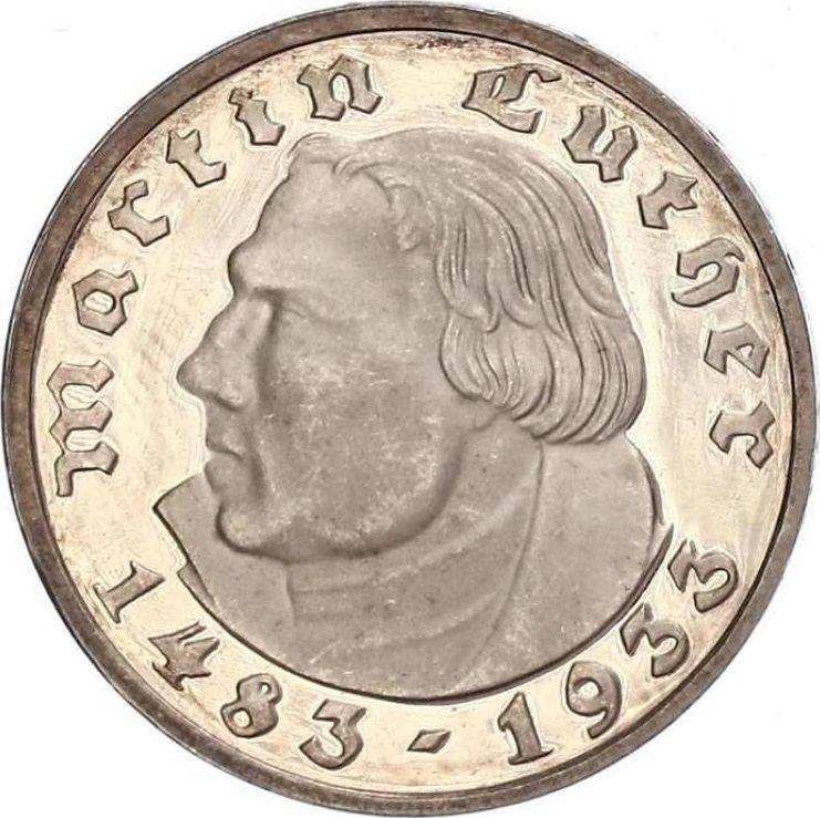 2 рейхсмарки 1933 года F "Мартин Лютер" (Германия, Третий рейх)