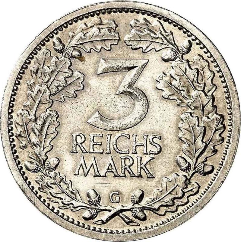 3 рейхсмарки 1933 года G (Германия, Bеймарская республика)