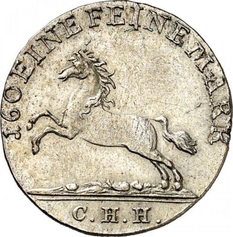 Узнайте актуальную стоимость ганноверской монеты 3 мариенгроша 1817 года со знаком C.H.H.. Это серебряная монета периода Георга III отчеканена на Ганновер монетном дворе. Рекорд цены принадлежит лоту 364 проданному на аукционе Dix Noonan Webb за 320 GBP. Торги состоялись 10 июня 2015.