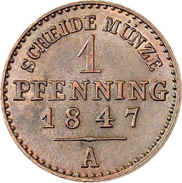 По последним данным на 5 декабря 2025 средняя стоимость медной монеты 1 пфенниг 1847 года с буквами A составляет 25 USD. Монета выполнена из недрагоценного металла, поэтому в плохой сохранности может иметь карайне низкую стоимость и ликвидность.