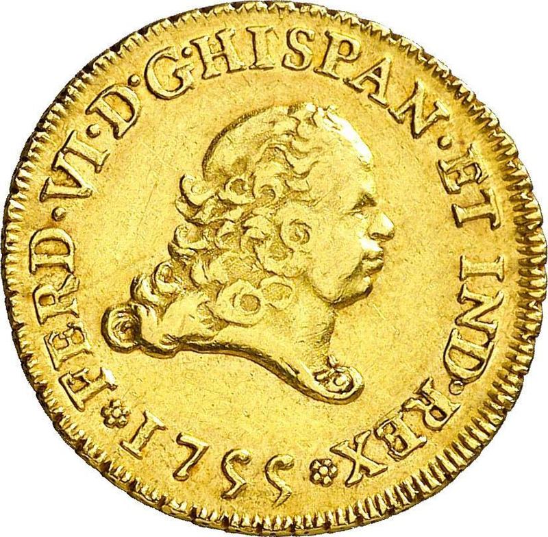 2 эскудо 1755 года Mo MM (Мексика, Фердинанд VI)