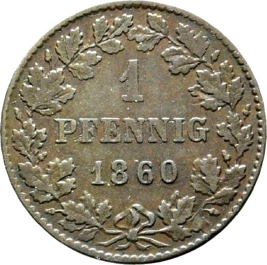 По последним данным на 5 декабря 2025 средняя стоимость медной монеты 1 пфенниг 1860 года составляет 35 USD. Монета выполнена из недрагоценного металла, поэтому в плохой сохранности может иметь карайне низкую стоимость и ликвидность.