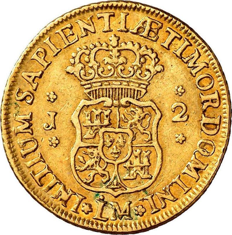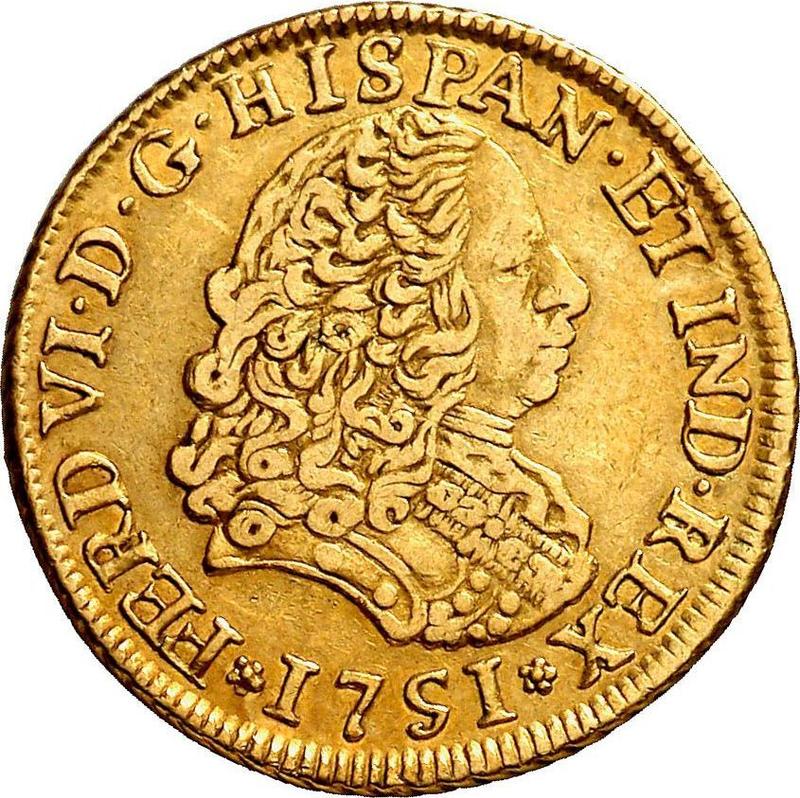 Сколько стоит золотая монета Фердинанда VI 2 эскудо 1751 года LM J?