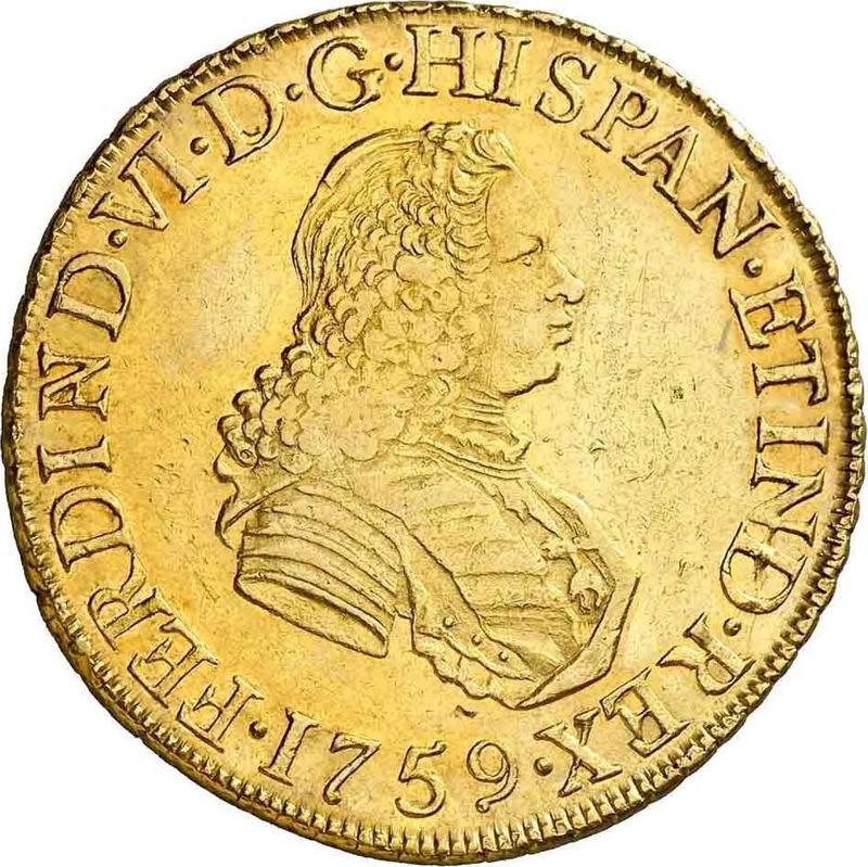 Сколько стоит золотая монета Фердинанда VI 8 эскудо 1759 года LM JM?
