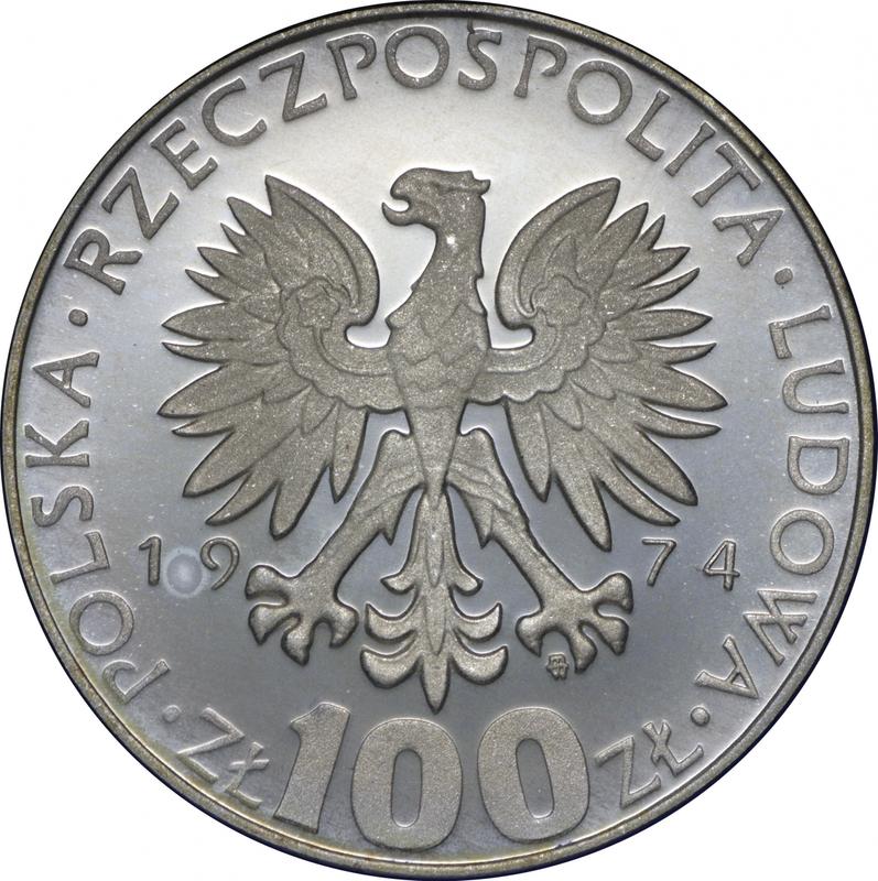 Узнайте актуальную стоимость польской монеты 100 злотых 1974 года "Мария Склодовская-Кюри" со знаком MW AJ. Серебро. Это серебряная монета периода Народной Республики отчеканена на варшавском монетном дворе. Рекорд цены принадлежит лоту 666 проданному на аукционе Spink за 150 GBP. Торги состоялись 6 декабря 2017.
