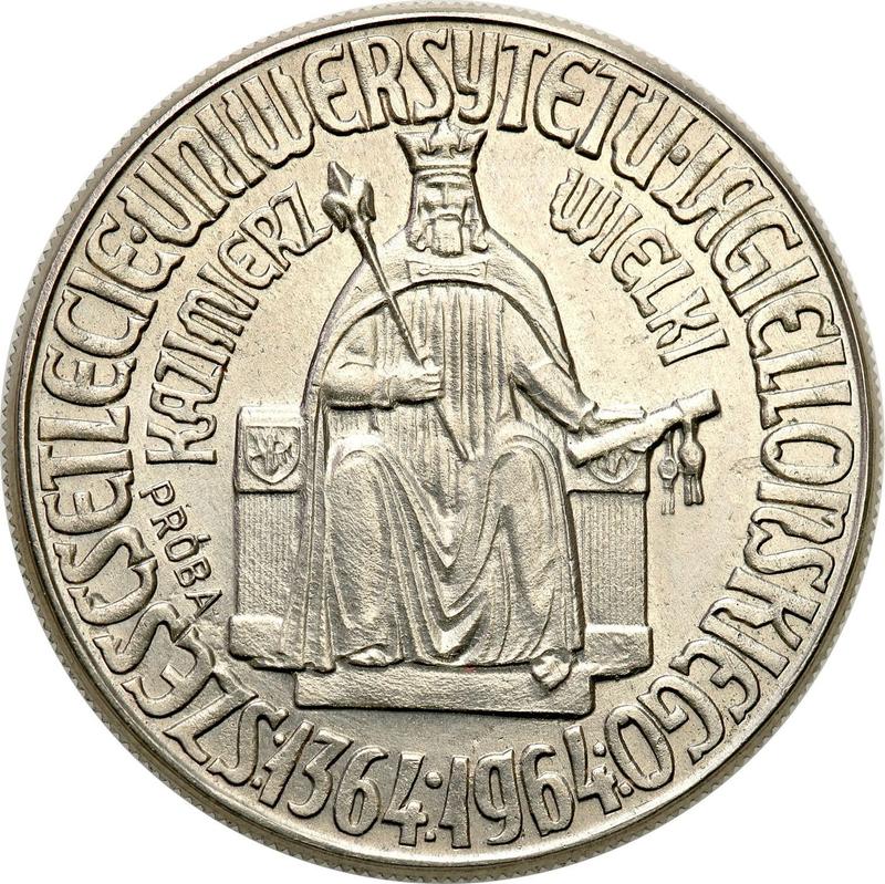 Пробные 10 злотых 1964 года "600 лет Ягеллонскому университету". Орел без короны. Никель (Польша, Народная Республика)