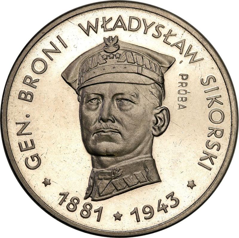 Пробные 100 злотых 1981 года MW "Генерал Владислав Сикорский". Никель (Польша, Народная Республика)