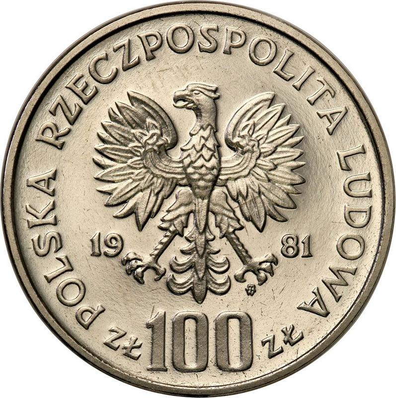 Сколько стоит никелевая монета Народной Республики пробные 100 злотых 1981 года MW "Краков", разновидность - никель?